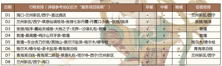 重(zhong)要提示:司機(jī)或導(dao)遊,此天行程(cheng)會根據莫高(gao)窟們(men)票的(de)預約情況調整此天的(de)實際(ji)遊覽順序,敬請(qing)見諒!